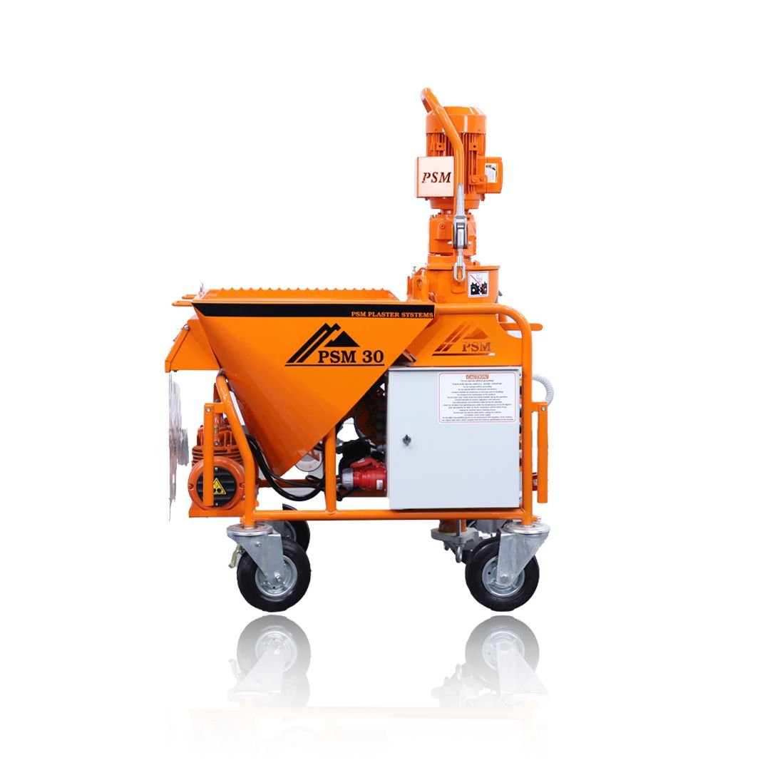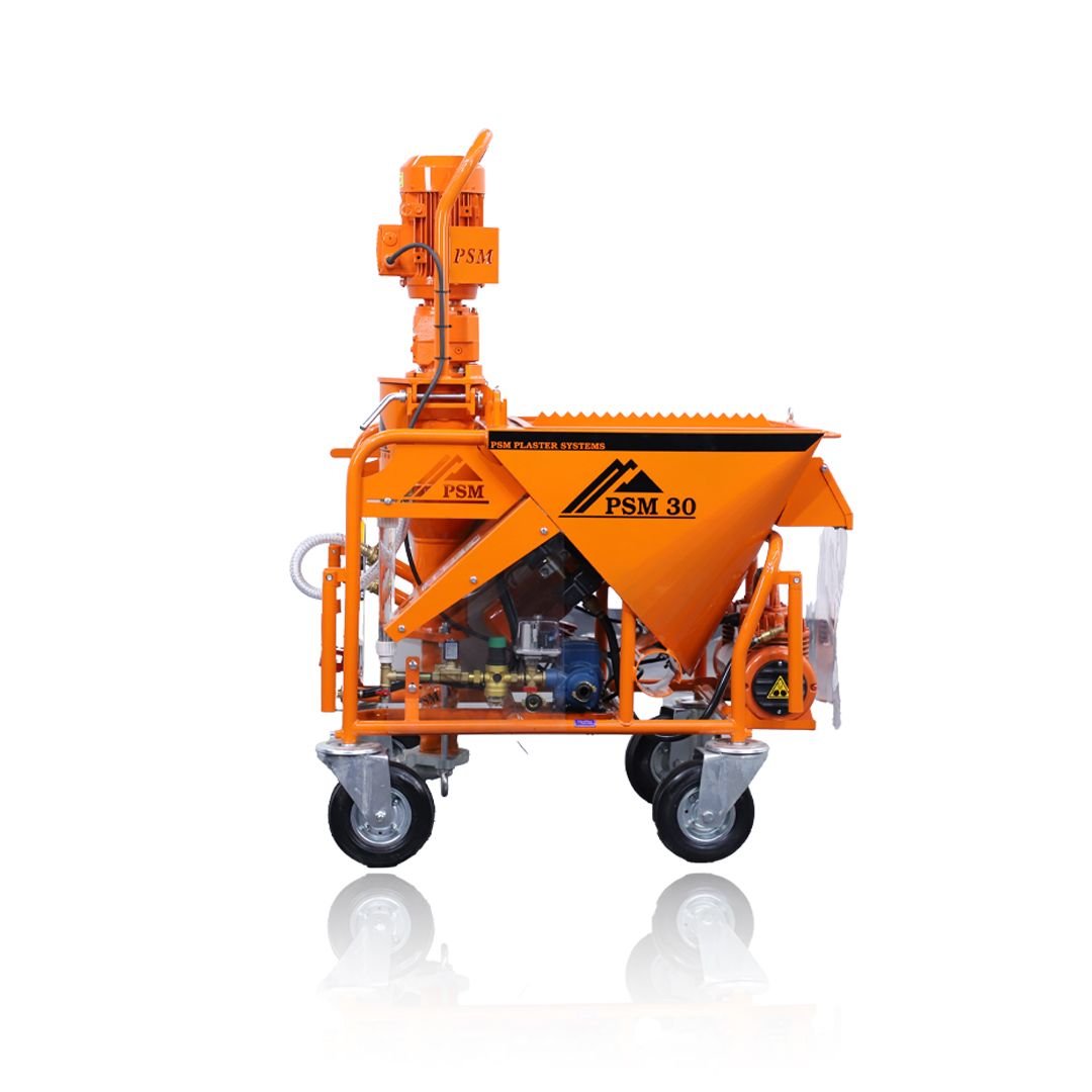 La PSM 30 est une machine à projeter pour enduits prémélangés, adaptée aux applications intérieures et extérieures. Elle permet de pomper et de pulvériser tous types d'enduits ou de mélanges secs à base de ciment. Son châssis robuste résiste aux conditions exigeantes des chantiers tout en restant facile à transporter. La machine offre de hautes performances grâce à son moteur à eau inox italien et à son panneau électrique simple d'utilisation.