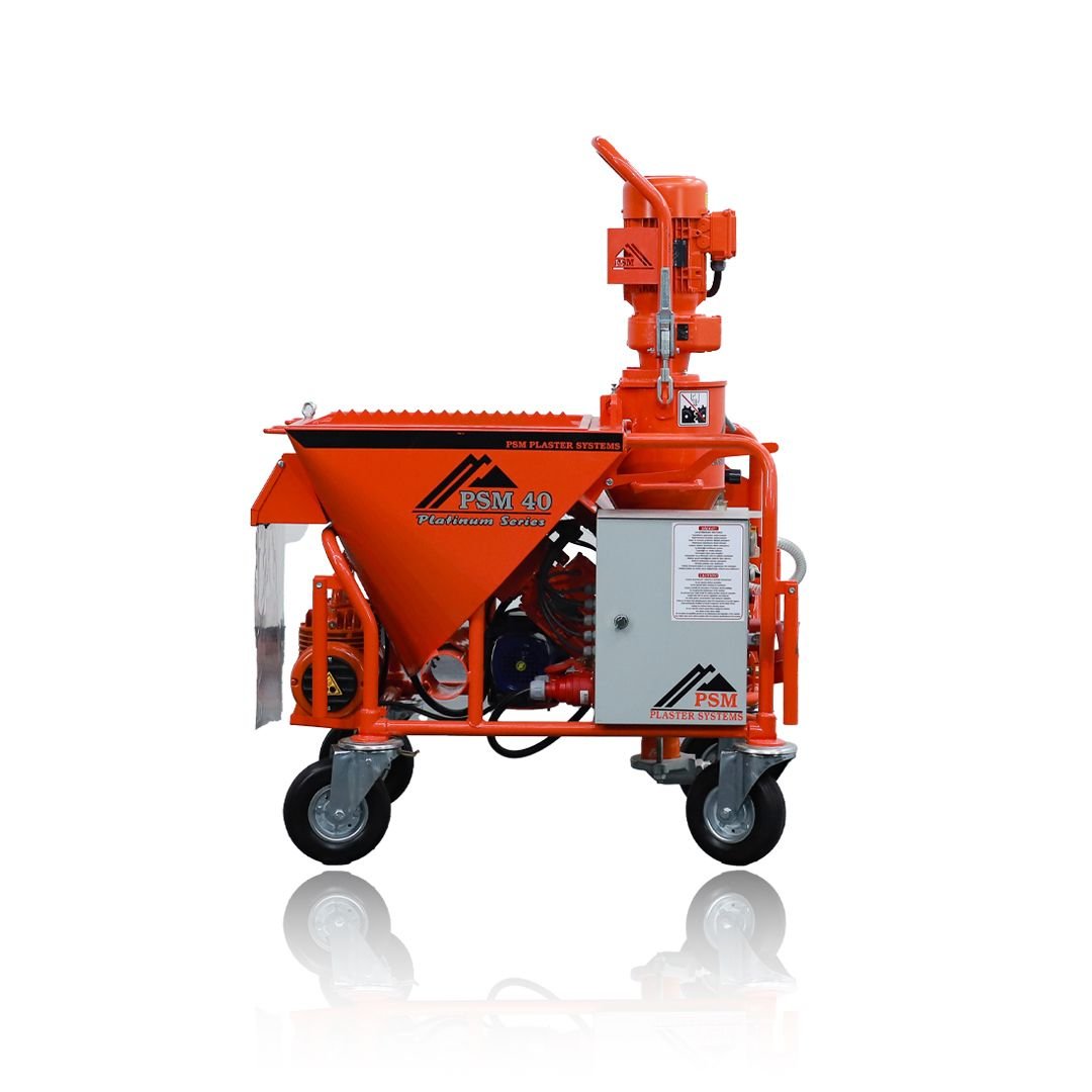 Le PSM 40 Platinum est la machine à plâtre prêt à l’emploi la plus puissante de sa série. Elle permet de pomper et de projeter tous types de mélanges secs à base de plâtre ou de ciment, pour des applications d’enduit en intérieur comme en extérieur.